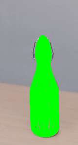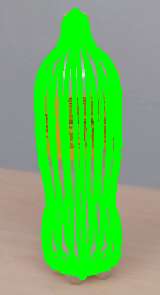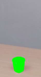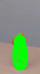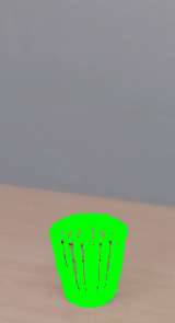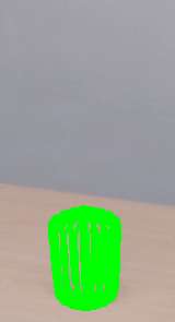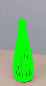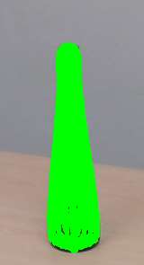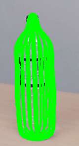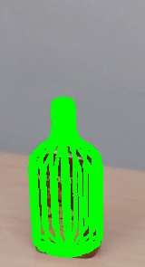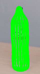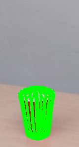 To estimate the shape of an object, we initialise around the 3D centroid, estimated from the two views, a cylindrical model that iteratively fits the object shape as observed by the cameras. The cylindrical model consists of a set of circumferences, each consisting of a set of sampled sparse 3D points. For each iteration, the radius of the circumferences is decreased and the points are resampled. If all the 3D points belonging to a circumference and projected in both views lie within the object mask of each view, then the radius of the circumference at that height is not longer decreased and reaches convergence (green points). Red are the projected points lying outside the segmentation masks. Blue are the projected points lying inside the segmentation mask but not at convergence yet.