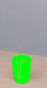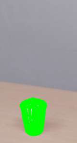 Shape fitting at convergence for each object in the CORSMAL Containers dataset. For the transparent objects 6 and 7, the underline deep learning-based segmentation method (Mask R-CNN) cannot detect the objects. Segmentation failures prevent LoDE to estimate the shape of the object.