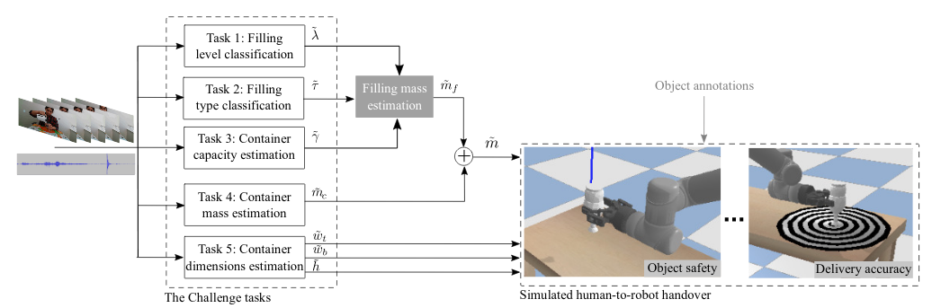 The CORSMAL benchmark for the prediction of the properties of containers A. Xompero, S. Donaher, V. Iashin, F. Palermo, G. Solak, C. Coppola, R. Ishikawa, Y. Nagao, R. Hachiuma, Q. Liu, F. Feng, C. Lan, R. H. M. Chan, G. Christmann, J. Song, G. Neeharika, C. K. T. Reddy, D. Jain, B. U. Rehman, A. Cavallaro IEEE Access, vol. 10, 2022. [paper] [arxiv] [details] |